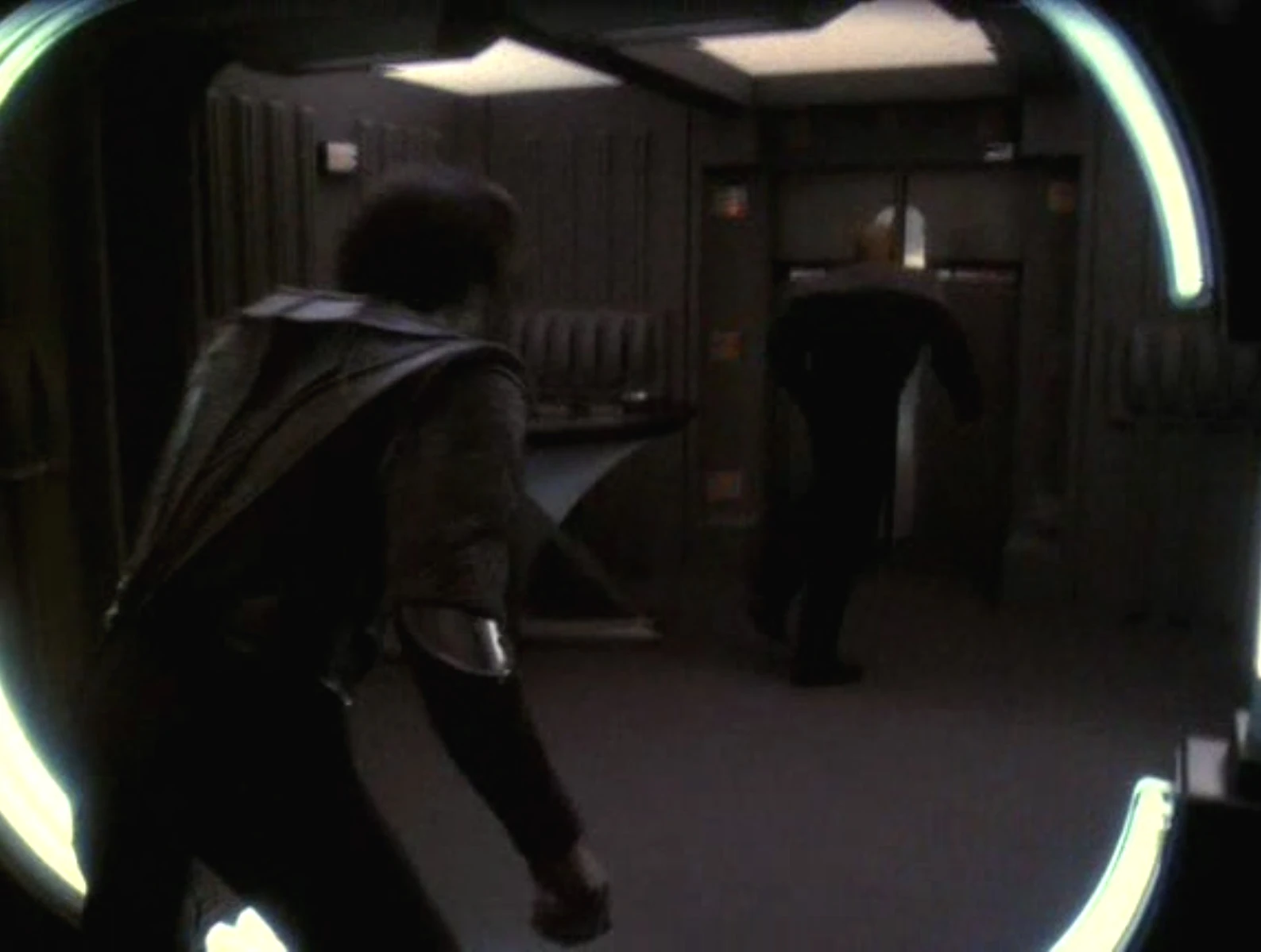 Despite subspace interference over the viewscreen, Kira reminds Worf he must follow his original orders to end their search soon so they can assist the troop convoy in the Badlands. Both Doctor Bashir and Miles O'Brien disagree with the Major's orders, trying to pretend they are unable to understand the message through the interference. Worf and Dax however know full well what Kira was trying to tell them, and Worf feels that ignoring the orders would be dishonorable. When Bashir openly remarks that he doesn't consider Worf's honor to be worth Captain Sisko's life, Worf dismisses him from the bridge and orders helm to lay in a course for the third planet and continue their search for the remaining time.